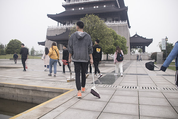 首先,相关学员自行准备好水,打扫工具,院旗,党旗等所需用品,而后全体学员在东门集合好并由各学部负责人组织签到。负责人确定人数之后全体学员徒步行走到九华湖中华德文化公园,徒步出行提高了青年大学生对身体力行的理解,也体现了青年大学生的蓬勃朝气。到达公园后,全体学员以组为单位,每组都已准备好相应的打扫工具,在规定时间内对公园卫生进行打扫,让原本春意盎然的公园更加整洁。清扫期间还有专门拍照和记录人员进行拍照记录,为学员们记录下这一难忘时刻。清扫结束后,负责人对此次活动进行总结,并清点人数,最后全体参与此次实践活动的学员在公园一起合照留影,实践活动至此圆满结束。