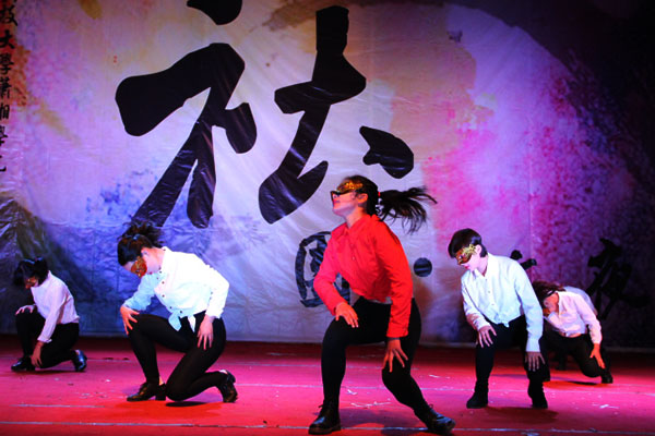金色的面具,动感的节奏,飘逸的长发,best365官网女生部啦啦队的舞蹈《1234》掀起了晚会的第一个高潮,他们时而可爱时而性感的舞蹈让台下观众大呼过瘾。红色卫衣,白色面具,化学俱乐部的9个率性小伙全身迸发着年轻的活力,一支《Hip Hop Show》high翻全场,更加难得是现代舞蹈中融入了古筝乐曲、京剧等古典元素,将古典与现代融合得恰到好处。