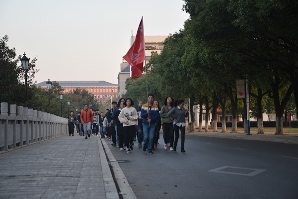 迎着十九大的清风,心怀着对党的敬意,11月5日早上6:30,best365官网第二期发展对象培训的以“学习十九大精神,树立强健体魄新风尚”为主题的实践活动由党建培训部部长谢威在南图前坪主持展开。本次实践活动的内容是晨跑锻炼,以南图为起点沿着固定路线环校晨跑,最终回到南图。这不仅是大学生提高自我的一种重要方式,也是在行动上进一步向党组织靠拢的的体现。