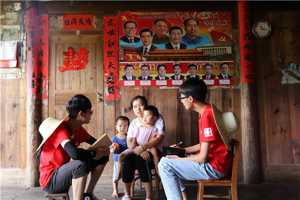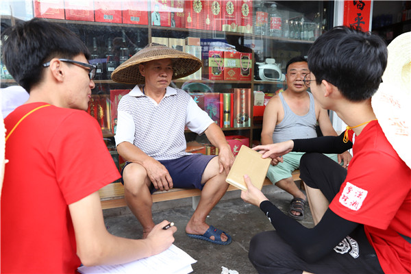 烈日炎炎,志愿者的脚步却没有停止,走访一家又一家。通过实地走访调查,队员们感触良多。在进行调研过程中,他们遇到过不少阻力,例如语言不通、不熟悉村落布局等。但在村政府和村民们帮助下,调研小组克服困难,顺利完成调研任务。“习近平总书记对我们青年寄予厚望,希望广大青年学子志存高远,脚踏实地。我们也希望能够通过此次活动传承长征精神,彰显青年的时代担当。”“三下乡”团队民情调研组成员陈柄志说道。