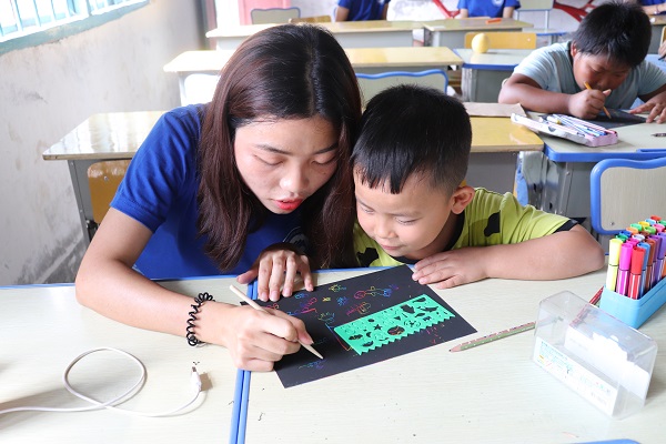 best365中国官方网站暑期三下乡支教团队在教学课堂上采取了奖励制度,对勇敢表现自己的小朋友奖励小红花。一天支教课程结束后,小朋友们可以根据小红花的数量排名获得志愿者老师们准备的不同奖品,这增加了孩子们上课的积极性,也让孩子们在课堂上更加踊跃的去表现自。在获得了知识的同时,也使自己变的更加自信,朝着更高的人生目标迈进。 “我获得了7颗小红花啦呢!”今年10岁的唐桂林在上完美术课后兴奋的说道。尽管一天的课程经结束,但还有几个小朋友仍在课桌上语文老师写在黑板上的古诗。